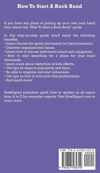 If you have any plans of putting up your own rock band then check this "How To Start a Rock Band" guide. In this step-by-step guide you'll enjoy the following benefits: - Learn choose the genre and search for band members. - Discover organizational issues. - Learn how to choose instrument sound and equipment. - How to start searching for a place for your band rehearsals. - Learn more about distortion of side effects. - Get tips on steps to popularity and fame. - Be able to organize and start rehearsals. - Get tips on how to hold your first performance - And much more! HowExpert publishes quick 'how to' guides on all topics from A to Z by everyday experts.