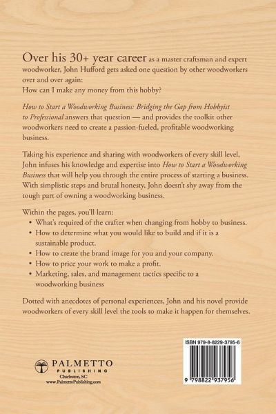 If you're a passionate woodworker wondering how to make your hobby a full-time project that brings steady income, successful woodworking business owner John A. Hufford offers a comprehensive guide to achieve your goals. Over his 30+ year career as a master craftsman and expert woodworker, John gets asked one question by other woodworkers over and over again: How can I make any money from this hobby? John's book is here to answer that question - and provide the toolkit other woodworkers need to create a passion-fueled, profitable woodworking business. Unlike business books and woodworking technique books, How to Start a Woodworking Business: Bridging the Gap from Hobbyist to Professional combines the sales and business side of the craft with woodworking-specific instructors, making this how-to guide one-of-a-kind. Whether you want to launch a full-time or part-time business, How to Start a Woodworking Business is your guide to building the foundation, understanding how to launch, and carrying through to execution. Taking his experience and sharing with woodworkers of every skill level, John infuses his knowledge and expertise into How to Start a Woodworking Business that will help you through the entire process of starting a business. With simplistic steps and brutal honesty, John doesn't shy away from the tough part of owning a woodworking business. Within the pages, you'll learn: ● What's required of the crafter when changing from hobby to business. ● How to determine what you would like to build and if it is a sustainable product. ● How to create the brand image for you and your company. ● How to price your work to make a profit. ● Marketing, sales, and management tactics specific to a woodworking business. Dotted with anecdotes of personal experiences, John and his novel provide woodworkers of every skill level the tools to make it happen for themselves.