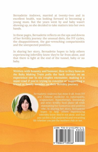 Bernadette Andrews, married at twenty-two and in excellent health, was looking forward to becoming a young mum. But the years went by and baby wasn't showing up, so she decided to take matters into her own hands. In these pages, Bernadette reflects on the ups and downs of her fertility journey: the unusual diets, the IVF cycles, the disappointment, the gut-wrenching comparisonitis and the unexpected positives. In sharing her story, Bernadette hopes to help others experiencing infertility know they're far from alone, and that there is light at the end of the tunnel, baby or no baby. Written with honesty and humour, How to Stay Sane on the Baby Making Train pulls the back curtain on an experience one in six couples encounter, making it a must-read if you're trying to conceive or supporting a friend or family member on their fertility journey.