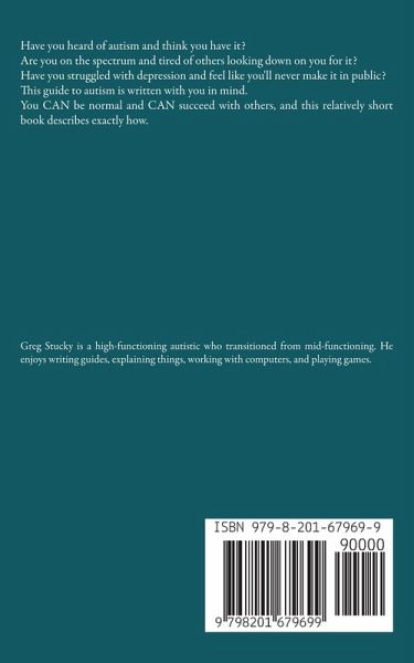 Have you heard of autism and think you have it? Are you on the spectrum and tired of others looking down on you for it? Have you struggled with depression and feel like you'll never make it in public? This guide to autism is written with you in mind. You CAN be normal and CAN succeed with others, and this relatively short book describes exactly how.