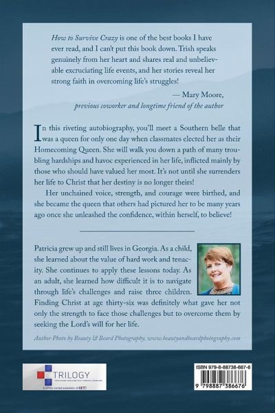 How to Survive Crazy is one of the best books I have ever read, and I can't put this book down. Trish speaks genuinely from her heart and shares real and unbelievable excruciating life events, and her stories reveal her strong faith in overcoming life's struggles! - Mary Moore, previous coworker and longtime friend of the author In this riveting autobiography, you'll meet a Southern belle that was a queen for only one day when classmates elected her as their Homecoming Queen. She will walk you down a path of many troubling hardships and havoc experienced in her life, inflicted mainly by those who should have valued her most. It's not until she surrenders her life to Christ that her destiny is no longer theirs! Her unchained voice, strength, and courage were birthed, and she became the queen that others had pictured her to be many years ago once she unleashed the confidence, within herself, to believe!