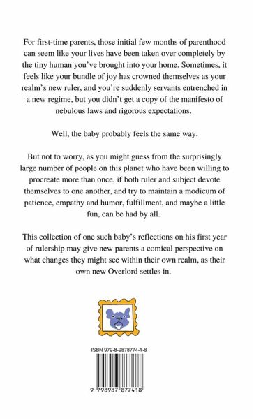 For first-time parents, those initial few months of parenthood can seem like your lives have been taken over completely by the tiny human you've brought into your home. Sometimes, it feels like your bundle of joy has crowned themselves as your realm's new ruler, and you're suddenly servants entrenched in a new regime, but you didn't get a copy of the manifesto of nebulous laws and rigorous expectations. Well, the baby probably feels the same way. But not to worry, as you might guess from the surprisingly large number of people on this planet who have been willing to procreate more than once, if both ruler and subject devote themselves to one another, and try to maintain a modicum of patience, empathy and humor, fulfillment, and maybe a little fun, can be had by all. This collection of one such baby's reflections on his first year of rulership may give new parents a comical perspective on what changes they might see within their own realm, as their own new Overlord settles in.