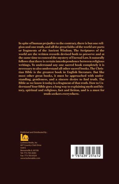 In spite of human prejudice to the contrary, there is but one religion and one truth, and all the great faiths of the world are parts or fragments of the Ancient Wisdom. The Scriptures of the world are the written records devised both to preserve and at the same time to conceal the mystery of Eternal Law. It naturally follows that there is certain interdependence between religious writings. To understand any one sacred book completely it is necessary to also understand all other sacred books. The Christian Bible is the greatest book in English literature. But like most other great books, it must be approached with understanding, gentleness, and a sincere desire to find truth. The Bible as we know it today is a fragment of that truth. How to Understand Your Bible goes a long way to explaining myth and history, spiritual and religious, fact and fiction, and is a must for truth seekers everywhere. "The whole motion of the Universe is toward Truth. Truth is growing up in everything, manifesting through all forms and natures. Truth, therefore, may be called the hidden good, the secret God who dwells in the temples that are built for it according to the law." ~ Manly P. Hall