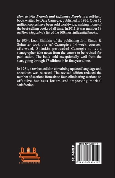 How To Win Friends and Influence People is a Self Help book written by Dale Carnegie, Published in 1936. Over 15 Million Copies have been sold world-wide, making it one of the Best Selling Books of all time. In 2011, it was number 19 on TIME Magzine's List of the 100 most Influencial Books.