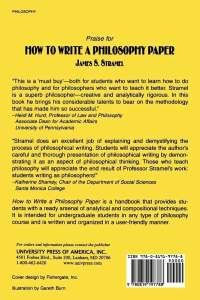 This is a 'must buy' - both for students who want to learn how to do philosophy and for philosophers who want to teach it better. -- Heidi M. Hurd, University of Pennsylvania Australian Journal Of Philosophy Those who teach philosophy will appreciate the end result of Professor Stramel's work: students writing as philosophers!> -- Katherine Shamey, Santa Monica College Australian Journal Of Philosophy Stamel has a good eye for the recurring problems we see in students struggling to come to terms with the discipline. He has produced a book which would be useful to have in one's campus bookshop, with a copy on reserve in the Library as well. Australian Journal Of Philosophy Stamel has a good eye for the recurring problems we see in students struggling to come to terms with the discipline. He has produced a book which would be useful to have in one's campus bookshop, with a copy on reserve in the Library as well. Australian Journal Of Philosophy This is a 'must buy' - both for students who want to learn how to do philosophy and for philosophers who want to teach it better. -- Heidi M. Hurd, University of Pennsylvania Australian Journal Of Philosophy Those who teach philosophy will appreciate the end result of Professor Stramel's work: students writing as philosophers! -- Katherine Shamey, Santa Monica College Australian Journal Of Philosophy
