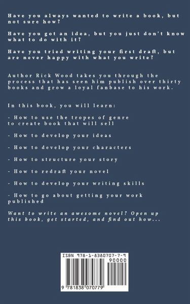Have you always wanted to write a book, but not sure how?Have you got an idea, but you just don't know what to do with it?Have you tried writing your first draft, but are never happy with what you write?Author Rick Wood takes you through the process that has seen him publish over thirty books and grew a loyal fanbase to his work.In this book, you will learn:- How to use the tropes of genre to create book that will sell- How to develop your ideas- How to develop your characters- How to structure your story- How to redraft your novel- How to develop your writing skills- How to go about getting your work publishedWant to write an awesome novel? Let this book help you become the writer you know you can be...