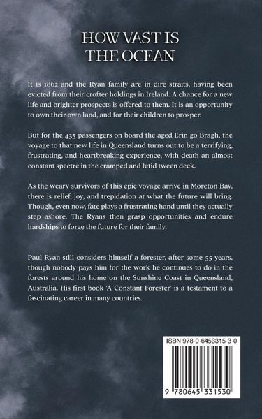 The Ryan family are in dire straits, having been evicted from their crofter holdings in Ireland. A chance for a new life and brighter prospects is offered to them with their passage paid by a benevolent society. It is an opportunity to own their own land, and for their children to prosper. But for the Ryan family and the other 425 passengers on board the aged Erin go Bragh, the voyage to that new life in Queensland turns out to be a terrifying, frustrating, and heartbreaking experience, with disease, hunger and death an almost constant spectre in the cramped and fetid tween deck. As the weary survivors of this epic voyage arrive in Moreton Bay, there is relief, joy, and trepidation at what the future will bring. Though, even now, fate plays a frustrating hand until they actually step ashore. The Ryans then grasp opportunities and endure hardships to forge the future for their family.