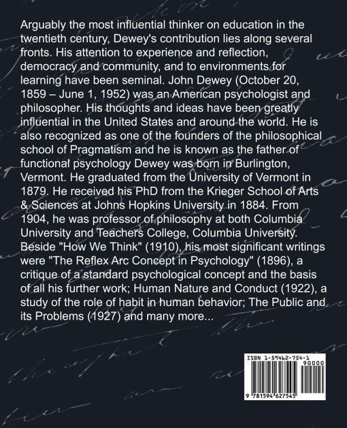 rguably the most influential thinker on education in the twentieth century, Dewey's contribution lies along several fronts. His attention to experience and reflection, democracy and community, and to environments for learning have been seminal...