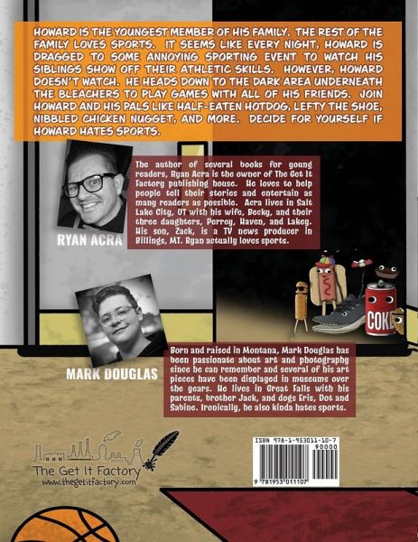 Howard is the youngest member of his family. The rest of his family loves sports. It seems like every night, Howard gets dragged to some sporting event to watch his siblings play. Luckily, Howard doesn't watch, he heads down to the dark area underneath the bleachers to play games with all of his friends. Join Howard and Friends like Half-Eaten Hot Dog, Lefty the Shoe, Nibbled Chicken Nugget, and more, then decide for yourself if Howard Hates Sports.