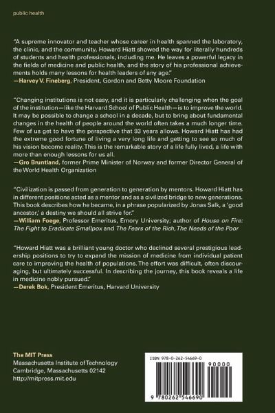 The seven-decade career of Howard Hiatt, a pioneer in public health, advocate for global health and health equity, a mentor to generations of healthcare leaders. Howard Hiatt—physician, scientist, advocate for global health, and mentor to generations of healthcare leaders—has spent much of his seven-decade career being ahead of his time. His innovative ideas as head of Harvard's School of Public Health from 1972 to 1984—about preventive medicine, the incorporation of cutting-edge science into the curriculum, and cross-disciplinary collaboration—met fierce resistance at the time but are now widely recognized building blocks of public health. Hiatt's interest in global health and health equity equipped him to advocate for a series of younger physicians and researchers, including Paul Farmer and Jim Kim, two founders of Partners in Health, and the prominent health policy expert Don Berwick. This book tells the story of Hiatt's life and work, with important lessons for today drawn from Hiatt's 92 years of experience. Hiatt, born in 1925, attended Harvard College and received an M.D. degree from Harvard Medical School. Before he headed the School of Public Health, he was a modernizing force as chief of medicine at Boston's Beth Israel Hospital. After his stormy tenure at SPH, he went to Brigham and Women's as a professor of medicine and a senior physician with a portfolio of his own devising. It was at the Brigham that Hiatt took on the role of mentor, influencing generations of physicians and staking out new territory in the fields of global health and clinical effectiveness. He is still active at 92 as teacher and mentor.