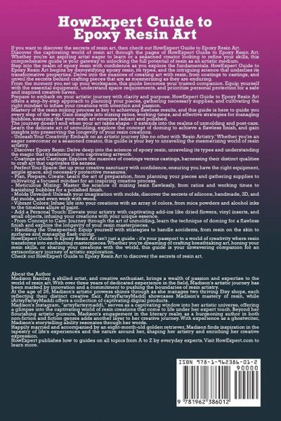 Whether you're an aspiring artist eager to learn or a seasoned creator looking to refine your skills, this comprehensive guide is your gateway to unlocking the full potential of resin as an artistic medium. Step into the realm of epoxy resin with confidence as you explore the fundamentals. HowExpert Guide to Epoxy Resin Art begins by demystifying epoxy resin, its types, and the intriguing science that underlies its transformative properties. Delve into the nuances of creating art with resin, from coatings to castings, and unveil the secrets behind crafting pieces that are as mesmerizing as they are enduring. From the moment you set up your workspace, this guide becomes your trusted companion. Equip yourself with the essential equipment, understand space requirements, and prioritize personal protection for a safe and inspired creative haven. Prepare to embark on your artistic journey with clarity and purpose. HowExpert Guide to Epoxy Resin Art offers a step-by-step approach to planning your pieces, gathering necessary supplies, and cultivating the right mindset to infuse your creations with intention and passion. Mastery of the resin mixing process is key to achieving flawless results, and this guide is here to guide you every step of the way. Gain insights into mixing ratios, working times, and effective strategies for managing bubbles, ensuring that your resin art emerges radiant and polished. The journey doesn't end when your art takes shape - it extends into the realms of unmolding and post-care. Learn the delicate art of unmolding, explore the concept of doming to achieve a flawless finish, and gain insights into preserving the longevity of your resin creations. - Unleash Your Creativity: Embark on an artistic journey like no other with 'Resin Artistry.' Whether you're an eager newcomer or a seasoned creator, this guide is your key to unraveling the mesmerizing world of resin artistry. - Discover Epoxy Resin: Delve deep into the science of epoxy resin, unraveling its types and understanding the magic that transforms it into captivating artwork. - Coatings and Castings: Explore the nuances of coatings versus castings, harnessing their distinct qualities to craft art that captivates the senses. - Perfect Your Space: Set up your creative sanctuary with confidence, ensuring you have the right equipment, ample space, and necessary protective measures. - Plan, Prepare, Create: Learn the art of preparation, from planning your pieces and gathering supplies to cultivating a focused mindset for an inspiring creative process. - Meticulous Mixing: Master the science of mixing resin flawlessly, from ratios and working times to banishing bubbles for a polished finish. - Molds Unveiled: Unleash your imagination with molds, discovering the secrets of silicone, handmade, 3D, and flat molds, and even working with wood. - Vibrant Colors: Infuse life into your creations with an array of colors, from mica powders and alcohol inks to the timeless allure of paint. - Add a Personal Touch: Elevate your artistry with captivating add-ins like dried flowers, vinyl inserts, and small objects, infusing your creations with your unique essence. - From Concept to Care: Journey through the art of unmolding, learn the technique of doming for a flawless finish, and explore the longevity of your resin masterpieces. - Handling the Unexpected: Equip yourself with strategies to handle accidents, from resin on skin to surfaces and managing flash curing. HowExpert Guide to Epoxy Resin Art isn't just a guide - it's your passport to a world of creativity, where resin transforms into enchanting masterpieces. Whether you're dreaming of crafting breathtaking art, honing your resin skills, or sharing your creations with the world, this guide is your unwavering companion for an extraordinary journey of artistic exploration.