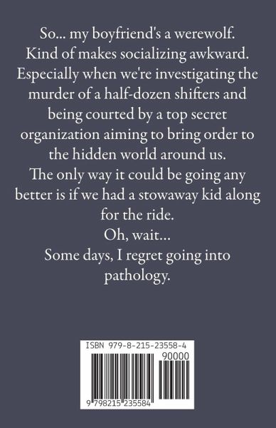 So... my boyfriend's a werewolf. Kind of makes socializing awkward. Especially when we're investigating the murder of a half-dozen shifters and being courted by a top secret organization aiming to bring order to the hidden world around us. The only way it could be going any better is if we had a stowaway kid along for the ride. Oh, wait… Some days, I regret going into pathology.