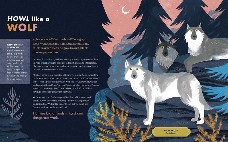 Now in paperback, the acclaimed Howl Like a Wolf! fosters creative play and fun learning by inviting kids to act out the habits and behaviors of 13 animals--from balancing an egg like a emperor penguin to stalking like a camouflaged leopard--using the accompanying pop-out masks.