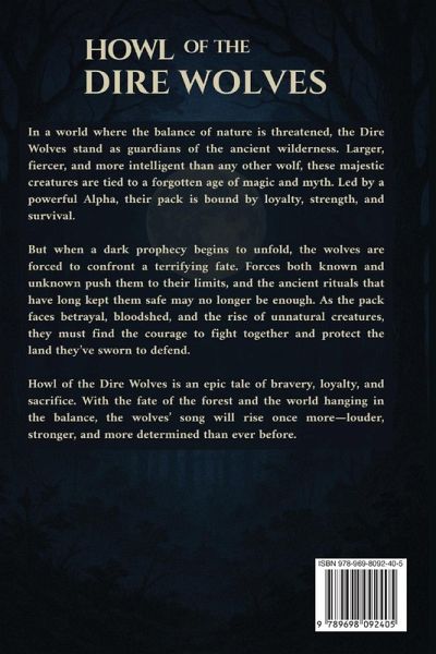 In the heart of an ancient forest, a haunting howl breaks the silence-one that signals the rise of an age-old prophecy, awakening primal forces that threaten the balance between nature and darkness. Howl of the Dire Wolfs is an epic tale of loyalty, survival, and mystic destiny, where the fate of the wild rests in the paws of a powerful pack. Larger, fiercer, and bound by a magic older than time, the Dire Wolves must navigate a world on the brink of collapse. As ancient prophecies unfold and new threats emerge from the shadows, an awakened Alpha leads the charge against betrayal, curses, and a looming war that could shatter their bond forever. With rich world-building, gripping tension, and lyrical prose, this captivating fantasy adventure immerses readers in a world where the howl of the pack is both a battle cry and a song of unity. Prepare to run with the wolves-through twisted forests, sacred rites, and moonlit rituals-in a fight to reclaim the soul of the wild.