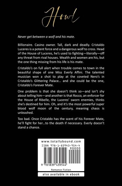 Never get between a wolf and his mate. Billionaire. Casino owner. Tall, dark and deadly. Cristaldo Luceres is a potent force and a dangerous wolf to cross. Head of the House of Luceres, he's used to fighting-literally-off any threat from rival houses. Wealth and women are his, but the one thing missing from his life is his mate. Cristaldo's on full alert when trouble comes to town in the beautiful shape of one Miss Everly Affini. The talented musician won a shot to play at the coveted Nero's in Cristaldo's Glittering Palace... and she could be the one, Cristaldo's Forever Mate. One problem is that she doesn't think so-and isn't shy about telling him-and another is that Rocco, an enforcer for the House of Ribelle, the Luceres' sworn enemies, thinks she's destined for him. Oh, and it's the most powerful super blood wolf moon of the century, meaning chaos is unleashed. Too bad. Once Cristaldo has the scent of his Forever Mate, he'll fight for her...to the death if necessary. Everly doesn't stand a chance.
