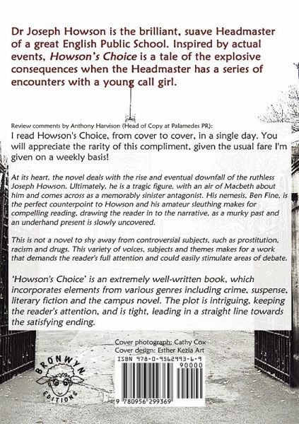 Howson's Choice tells the story of the rise and fall of Joseph Howson who, after rapidly working his way through the education system, is crowned headmaster of the exclusive private school, Cranford College. Dr Joseph Howson is the brilliant, suave Headmaster of a great English boarding Public School. Inspired by actual events, Howson's Choice is a tale of the explosive consequences when the Headmaster has a series of encounters with a young call girl.
