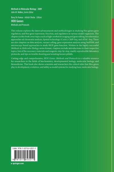 This volume explores the latest advancements and methodologies in studying Hox genes; gene regulation; and Hox gene expression, function, and regulation in various model organisms. The chapters in this book cover topics such as high-resolution imaging and gene editing, bioinformatics approaches ad chromatin analysis, Spatial technology (Curio), ChIP-Seq, and ATAC-Seq. There are also chapters on data analysis, variant calling, gene expression analysis using SmFISH, and microscopy-based approaches to study HOX gene function. Written in the highly successful Methods in Molecular Biology series format, chapters include introductions to their respective topics, lists of the necessary materials and reagents, step-by-step, readily reproducible laboratory protocols, and tips on trouble shooting and avoiding known pitfalls.Cutting-edge and comprehensive, HOX Genes: Methods and Protocols is a valuable resource for the researchers in fields of biochemistry, developmental biology, molecular biology, and biomedicine. This book also shows scientists and researchers the critical roles that Hox genes play in development, evolution, and utility as model systems for studying basic molecular biology.