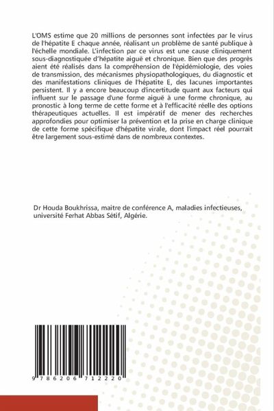 L'OMS estime que 20 millions de personnes sont infectées par le virus de l'hépatite E chaque année, réalisant un problème de santé publique à l'échelle mondiale. L'infection par ce virus est une cause cliniquement sous-diagnostiquée d'hépatite aiguë et chronique. Bien que des progrès aient été réalisés dans la compréhension de l'épidémiologie, des voies de transmission, des mécanismes physiopathologiques, du diagnostic et des manifestations cliniques de l'hépatite E, des lacunes importantes persistent. Il y a encore beaucoup d'incertitude quant aux facteurs qui influent sur le passage d'une forme aiguë à une forme chronique, au pronostic à long terme de cette forme et à l'efficacité réelle des options thérapeutiques actuelles. Il est impératif de mener des recherches approfondies pour optimiser la prévention et la prise en charge clinique de cette forme spécifique d'hépatite virale, dont l'impact réel pourrait être largement sous-estimé dans de nombreux contextes.