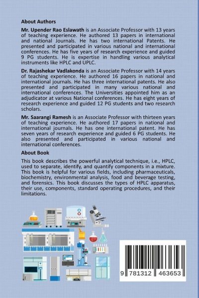 This book describes the powerful analytical technique, i.e., HPLC, used to separate, identify, and quantify components in a mixture. This book is helpful for various fields, including pharmaceuticals, biochemistry, environmental analysis, food and beverage testing, and forensics. This book discusses the types of HPLC apparatus, their use, components, standard operating procedures, and their limitations.