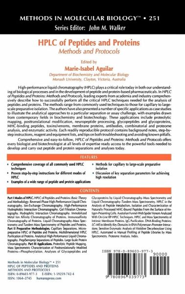 "...a showcase of state-of-the-art methodologies in the application of HPLC to protein/peptide studies...can be used by beginners and intermediate experts in this field to develop separation and analytical protocols...all scientists dealing with peptides and proteins can benefit from reading this book." - Proteomics
