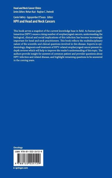 This book serves a snapshot of the current knowledge base in field. As human papillomavirus (HPV) causes a rising number of oropharyngeal cancers, understanding the biological, clinical and social implications of this infection has become increasingly important for head and neck practitioners. This book reflects the multidisciplinary nature of the scientific and clinical questions involved in this disease. Experts in epidemiology, diagnosis and treatment of HPV-related oropharyngeal cancer present in-depth reviews which will help to improve the reader's understanding of this topic. The authors provide insight for answers of common patient and provider questions about HPV infection and related disease, and highlight remaining questions to be answered in the coming years.