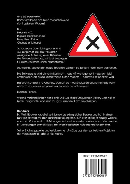 Sind Sie Personaler? Dann wird Ihnen das Buch möglicherweise nicht gefallen.Warum?Nun...Industrie 4.0Digitale Transformation.Disruptive Märkte.Change of Mindset.Intergenerativer Wissenstransfer.Schlagworte über Schlagworte, und ausgerechnet die am wenigsten geeignete Abteilung eines Betriebes, die Personalabteilung, soll jetzt Lösungen für diese Anforderungen präsentieren?So, wie HR-Abteilungen heute arbeiten, werden sie schlicht nicht mehr gebraucht. Die Entwicklung wird ohnehin kommen - das HR Management muss sich jetzt entscheiden, ob es auf dieser Welle surfen möchte - oder von ihr überrollt werden wird.Ergreifen sie aber ihre Chance, werden sie möglicherweise endlich als das wahrgenommen, was sie so gerne wären, aber nur selten sind:Business Partner.Welche Veränderungen nötig sind und wie diese umzusetzen wären, wird hier in kurzer, prägnanter und sehr flüssig zu lesender Form beschrieben.