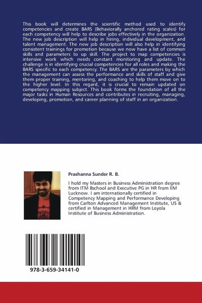 This book will determines the scientific method used to identify competencies and create BARS (Behaviorally anchored rating scales) for each competency will help to describe jobs effectively in the organization. The new job description will help in hiring, individual development, and talent management. The new job description will also help in identifying consistent trainings for promotion because we now have a list of common skills and parameters to up skill. The project to map competencies is intensive work which needs constant monitoring and update. The challenge is in identifying crucial competencies for all roles and making the BARS specific to each competency. The BARS are the parameters by which the management can assess the performance and skills of staff and give them proper training, mentoring, and coaching to help them move on to the higher level. In this regard, it is crucial to remain updated on competency mapping subject. This book forms the foundation of all the major tasks in Human Resources and contributes in recruiting, managing, developing, promotion, and career planning of staff in an organization.
