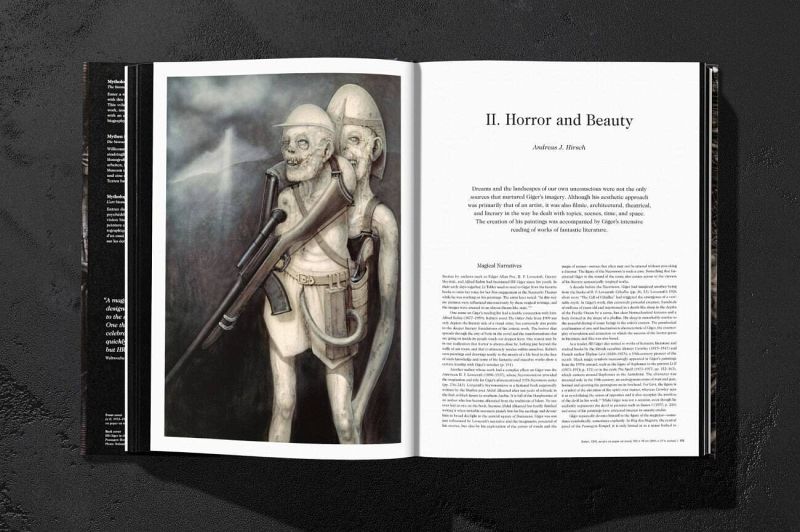 Dieses Opus Magnum, kurz vor seinem unerwarteten Tod begonnen, huldigt Gigers einzigartiger Vision. Es erzählt die vollständige Geschichte seines Lebens und seiner Kunst, zeigt seine Skulpturen, Filmarbeiten und legendären Plattencover sowie das Erbe, das er in seinem eigenen Künstlermuseum und seiner selbst entworfenen Bar in den Schweizer Alpen hinterlassen hat. In seinem Essay setzt sich der Giger-Experte Andreas J. Hirsch intensiv mit den Themen von Gigers Werk und seiner Welt auseinander. Der Band enthält zahlreiche Dokumente aus Gigers Archiv, Zitate von Zeitgenossen sowie eine umfangreiche Künstlerbiografie, die sich auf zeitgenössische Stimmen und Gigers eigene Aufzeichnungen stützt.