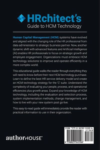 Human Capital Management (HCM) systems have evolved and aligned with the changing role of the HR professional from data administrator to strategic business partner. Now, another dynamic shift with advanced features and Artificial Intelligence (AI) enables HR professionals to focus on strategic growth and employee engagement. Organizations must embrace HCM technology solutions to improve and operate efficiently in a more complex world. This educational guide walks the reader through everything they will need to know before their next HCM technology purchase. Learn to define the best HR service delivery model and create an HCM technology strategy for the 'C' suite. Understand the complexity of evaluating your people, process, and operational efficiencies plus growth areas. Expand your knowledge of HCM technology, including the evaluation and selection process, system implementation methods, change management, and how to live with your new system post go-live. This easy-to-read guide will immediately provide the reader with practical information to use in their organization.