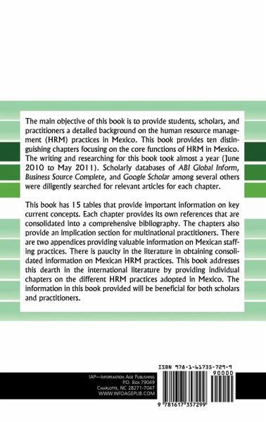 The main objective of this book is to provide students, scholars, and practitioners a detailed background on the human resource management (HRM) practices in Mexico. This book provides ten distinguishing chapters focusing on the core functions of HRM in Mexico. The writing and researching for this book took almost a year (June 2010 to May 2011). Scholarly databases of ABI Global Inform, Business Source Complete, Google Scholar among several others were diligently searched for relevant articles for each chapter. A comprehensive bibliography is provided at the end of the book. Each chapter has its learning goals, discussion questions, and team activities to engage students in active learning. Each chapter also provides an implication section for multinational practitioners. The chapter on "best practices" includes qualitative interviews with the HRM leaders of the "best companies." This book has 15 tables and two appendices that provide important information on the main concepts from the various chapters.. There is paucity in the literature in obtaining consolidated information on Mexican HRM practices. This book addresses this dearth in the international literature by providing individual chapters on the different HRM practices adopted in Mexico. The information in this book provided will be beneficial for both scholars and practitioners.