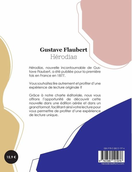 Hérodias, nouvelle incontournable de Gustave Flaubert, a été publiée pour la première fois en France en 1877. Vous souhaitez lire autrement et profiter d¿une expérience de lecture originale ? Grâce à notre charte éditoriale, nous vous offrons l¿opportunité de découvrir cette nouvelle dans une édition aérée et dans un grand format, facilitant ainsi votre lecture pour vous permettre de profiter d¿une expérience de lecture unique.