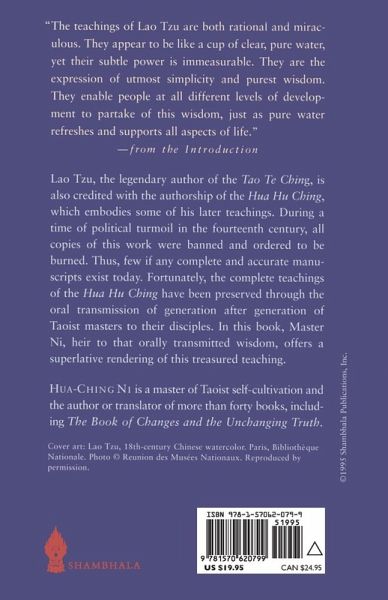Lao Tzu, the legendary author of the Tao Te Ching , is also credited with the authorship of the Hua Hu Ching , which embodies some of his later teachings. During a time of political turmoil in the fourteenth century, all copies of this work were banned and ordered to be burned. Thus, few if any complete and accurate manuscripts exist today. Fortunately, the complete teachings of the Hua Hu Ching have been preserved through the oral transmission of generation after generation of Taoist masters to their disciples. In this book, Master Ni, heir to that orally transmitted wisdom, offers a superlative rendering of this reassured teaching.