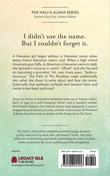 A Hawaiian girl began without a Hawaiian name, when being Native Hawaiian wasn't cool. When a high school classmate gave Sally-Jo Bowman a Hawaiian name in 1956, she ignored it because it wasn't "official" and she focused on becoming a journalist. Yet, over many years, "Keala-o-¿nuenue," The Path of The Rainbow, crept subliminally into what she chose to write about and how she wrote. Eventually that pathway surfaced and became front and center in her heart and mind. The Hali'a Aloha Series publishes personal essays, memoir, poetry and prose. The series celebrates moments big and small, harnessing the power of short forms to preserve the lived experiences of the storytellers.