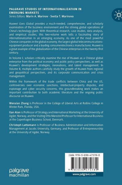 Huawei Goes Global provides a much-needed, comprehensive, and scholarly examination of the business environment and the striving global operations of China's technology giant. With theoretical research, case studies, data analysis, and empirical studies, this two-volume work tells a fascinating story of internationalization in an emerging economy. As one of the most powerful Chinese companies in the global economy, the largest global telecommunications-equipment producer and a leading consumer-electronics manufacturer, Huawei is a great example of the globalization of the Chinese enterprises in the twenty-first century.