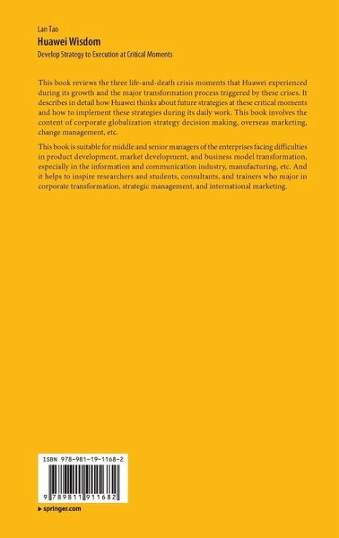 This book reviews the three life-and-death crisis moments that Huawei experienced during its growth and the major transformation process triggered by these crises. It describes in detail how Huawei thinks about future strategies at these critical moments and how to implement these strategies during its daily work. This book involves the content of corporate globalization strategy decision making, overseas marketing, change management, etc.