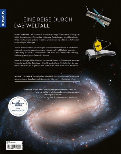 Die Aufnahmen der berühmten Weltraumteleskope Hubble und Webb versetzen uns immer wieder aufs Neue in andächtiges Schweigen. Sie zeigen mit funkelnden Sternhaufen, majestätischen Galaxien und geheimnisvollen Nebeln nicht nur überwältigende Anblicke des Universums, sondern geben auch einen Einblick in die aktuelle Forschung. Dieser einzigartige Bildband vereint die spektakulärsten Aufnahmen und neuesten Entdeckungen beider Teleskope mit leicht verständlichen Begleittexten.