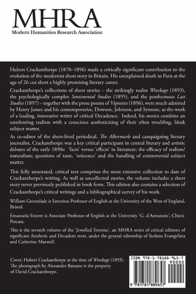 Hubert Crackanthorpe (1870-1896) made a critically significant contribution to the evolution of the modernist short story in Britain. His unexplained death in Paris at the age of 26 cut short a highly promising literary career. The striking realism of Crackanthorpe's first collection of short stories, Wreckage (1893), followed by the psychologically complex Sentimental Studies and posthumous Last Studies (1896), together with the prose poems of Vignettes (1896), were much admired by Henry James and his contemporaries, Dowson, Johnson and Symons, as the work of a leading, innovative writer of critical Decadence. Indeed his stories combine an unrelenting realism with a conscious aestheticizing of their often troubling, bleak subject matter. As co-editor of the short-lived periodical, The Albermarle and campaigning literary journalist, Crackanthorpe was a key critical participant in central literary and artistic debates of the early 1890s: 'facts' versus 'effects' in literature; the efficacy of realism/naturalism; questions of taste, 'reticence' and the handling of controversial subject matter. This fully annotated, critical text comprises the most extensive collection to date of Crackanthorpe's writing. As well as uncollected stories, the volume includes a short story never previously published in book form. This edition also contains a selection of Crackanthorpe's critical writings and a bibliographical survey of his work.