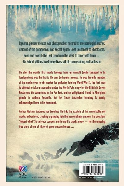 Explorer, pioneer aviator, war photographer, naturalist, meteorologist, author, student of the paranormal, and secret agent; loyal lieutenant to Shackleton, Bean and Hearst; the last man from the West to meet with Lenin ... Sir Hubert Wilkins lived many lives - all of them exciting and fantastic. He shot the world's first movie footage from an aircraft (while strapped to its fuselage); and was the first to fly over both polar ice caps. He was the only member of the media ever to win medals for gallantry (during World War I); the first man to attempt to take a submarine under the North Pole; a spy for the British in Soviet Russia and the Americans in the Far East; and an enlightened friend to Aboriginal people in outback Australia. Yet this South Australian farmboy is barely acknowledged here in his homeland. Author Malcolm Andrews has breathed life into the exploits of this remarkable yet humble adventurer, creating a gripping tale that resoundingly answers the question: 'Hubert who?' So set your compass north and it's chocks away - for the amazing true story of one of history's greatest unsung heroes...