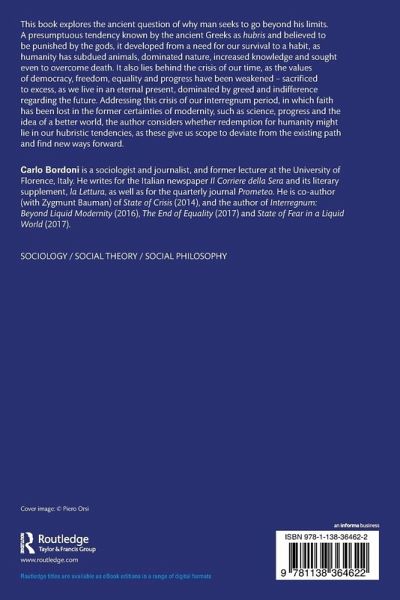 This book explores the ancient question of why man seeks to go beyond his limits. A presumptuous tendency known by the ancient Greeks as hubris and believed to be punished by the gods, it developed from a need for our survival to a habit, as humanity has subdued animals, dominated nature, increased knowledge and sought even to overcome death. It also lies behind the crisis of our time, as the values of democracy, freedom, equality and progress have been weakened - sacrificed to excess, as we live in an eternal present, dominated by greed and indifference regarding the future. Addressing this crisis of our interregnum period, in which faith has been lost in the former certainties of modernity, such as science, progress and the idea of a better world, the author considers whether redemption for humanity might lie in our hubristic tendencies, as these give us scope to deviate from the existing path and find new ways forward.