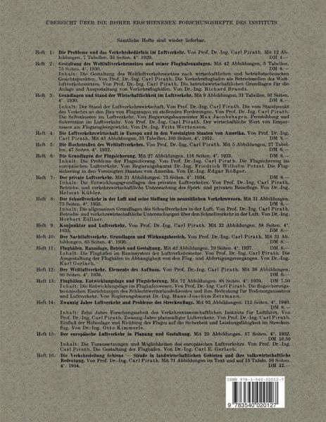 Am 23. Januar 1955 schloB Professor Dr. -Ing. , Dr. rer. pol. h. c. , Dr. -Ing. E. h. Carl Pirath fur immer die Augen. Durch einen tragischen Verkehrsunfall riB ihn der Tod mit ten aus seinem reichen und vielfaltigen Schaffen. }fit Pirath ist ein Mann aus dem Leben geschieden, der durch seine umfassenden Forschungsarbeiten eine neue Synthese zwischen Technik und Wirtschaft auf dem Gebiete des gesamten Verkehrswesens geschaffen hat. Die Ergebnisse der grundlegenden Forschungen Piraths erschienen in zahlreichen Auf satzen und Buchveroffentlichungen, von denen die Reihe der Forschungshefte des von ihm im Jahre 1929 gegrundeten Verkehrswissenschaftlichen Institutes fiir Luftfahrt an der Technischen Hochschule Stuttgart einen bedeutenden Raum einnimmt. Die in der Zeit bis 1940 erschienenen Hefte 1 bis 14 brachten dem Institut im In-und Ausland den Ruf einer einzigartigen Forschungsstatte fiir die Entwicklung der Grundlagen des Luftverkehrs. 1m Jahre 1952 wurde die Reihe durch das Heft15 "Der europaische Luftverkehr in Planung und Gestaltung" fortgesetzt. Zwei Jahre spater erschien als Heft 16 die Abhandlung "Die Verkehrsteilung Schiene - StraBe in landwirtschaftlichen Gebieten und ihre volkswirt schaftliche Bedeutung". Pirath hatte hiermit begonnen, in die Veroffentlichungsreihe des Institutes neben demLuftverkehr auch die ubrigen Verkehrsmittel einzubeziehen, nachdem das anfanglich nur fur verkehrswissenschaftliche Aufgaben der Luftfahrt eingerichtete Institut im Jahre 1950 in ein allgemeines "Verkehrswissenschaftliches Institut" umgewandelt worden war.