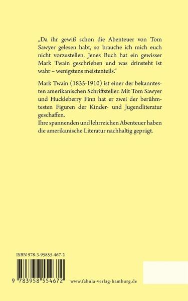Mark Twain (1835-1910) ist einer der bekanntesten amerikanischen Schriftsteller. Mit Tom Sawyer und Huckleberry Finn hat er zwei der berühmtesten Figuren der Kinder- und Jugendliteratur geschaffen. Ihre spannenden und lehrreichen Abenteuer haben die amerikanische Literatur nachhaltig geprägt.