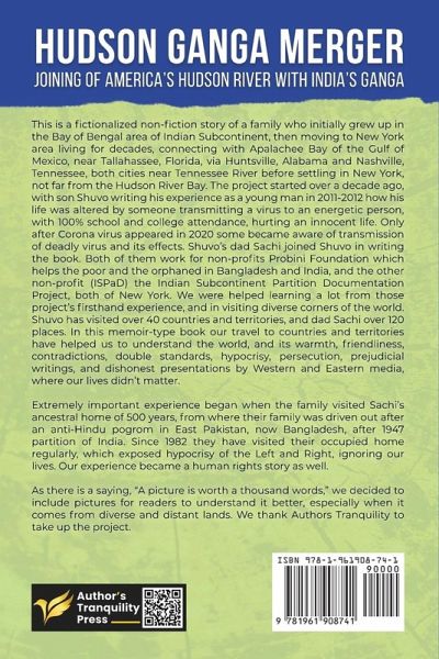 This is a fictionalized non-fiction story of a family who initially grew up in the Bay of Bengal area of Indian Subcontinent, then moving to New York area living for decades, connecting with Apalachee Bay of the Gulf of Mexico, near Tallahassee, Florida, via Huntsville, Alabama and Nashville, Tennessee, both cities near Tennessee River before settling in New York, not far from the Hudson River Bay. The project started over a decade ago, with son Shuvo writing his experience as a young man in 2011-2012 how his life was altered by someone transmitting a virus to an energetic person, with 100% school and college attendance, hurting an innocent life. Only after Corona virus appeared in 2020 some became aware of transmission of deadly virus and its effects. Shuvo's dad Sachi joined Shuvo in writing the book. Both of them work for non-profits Probini Foundation which helps the poor and the orphaned in Bangladesh and India, and the other non-profit (ISPaD) the Indian Subcontinent Partition Documentation Project, both of New York. We were helped learning a lot from those project's firsthand experience, and in visiting diverse corners of the world. Shuvo has visited over 40 countries and territories, and dad Sachi over 120 places. In this memoir-type book our travel to countries and territories have helped us to understand the world, and its warmth, friendliness, contradictions, double standards, hypocrisy, persecution, prejudicial writings, and dishonest presentations by Western and Eastern media, where our lives didn't matter. Extremely important experience began when the family visited Sachi's ancestral home of 500 years, from where their family was driven out after an anti-Hindu pogrom in East Pakistan, now Bangladesh, after 1947 partition of India. Since 1982 they have visited their occupied home regularly, which exposed hypocrisy of the Left and Right, ignoring our lives. Our experience became a human rights story as well. As there is a saying, "A picture is worth a thousand words," we decided to include pictures for readers to understand it better, especially when it comes from diverse and distant lands. We thank Authors Tranquility to take up the project.