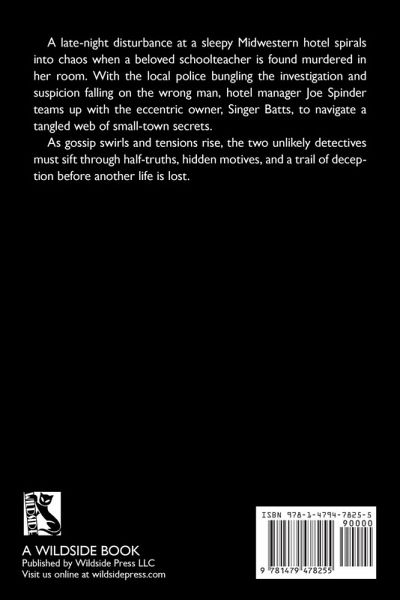 A late-night disturbance at a sleepy Midwestern hotel spirals into chaos when a beloved schoolteacher is found murdered in her room. With the local police bungling the investigation and suspicion falling on the wrong man, hotel manager Joe Spinder teams up with the eccentric owner, Singer Batts, to navigate a tangled web of small-town secrets. As gossip swirls and tensions rise, the two unlikely detectives must sift through half-truths, hidden motives, and a trail of deception before another life is lost.
