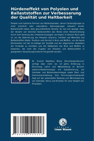 Polyole sind hydrierte Formen von Kohlenhydraten, deren Carbonylgruppe zu einer primären oder sekundären Hydroxylgruppe reduziert wurde. Ballaststoffe haben viele gesundheitliche Vorteile. Es hat sich gezeigt, dass der Verzehr von löslichen Ballaststoffen das Risiko einer Herzerkrankung durch eine Senkung des Cholesterinspiegels verringert. In diesem Buch geht es um die Optimierung von Polyolen (Glycerin, Sorbitol und Mannitol) und Ballaststoffen (Hafer, Psyllium und Gerste) in Brot und Muffins, um die beste Kombination auf der Grundlage der Qualität und der allgemeinen Akzeptanz der Produkte zu ermitteln und die Haltbarkeit von Brot und Muffins zu bewerten, die nach der Zugabe von Polyolen und Ballaststoffen in geeignetem Verpackungsmaterial hergestellt wurden.
