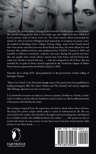 ?Hues of my Mind? is a book that relates to all and, everyone finds something for him/her in it: from a child to an aged, from a soldier to a doctor?.while a mother may be touched by some gesture, a brother may be delighted to find sisterly love?..not only a patriot will find oneself in it but also someone who is guilt-borne. It has poems for every mood and emotion: sadness to joy, it speaks of hope as well as despair, of anger and frustration, of love and dedication, of sacrifice?.of ego?and much more. It has a poem for every occasion: for someone leaving school, for someone missing college, for a newly-wed or even a widow. It is sure to touch and remain in some corner of your heart if you have loved anyone, built dreams or even had nightmares??this book is a tribute to Life and the living.