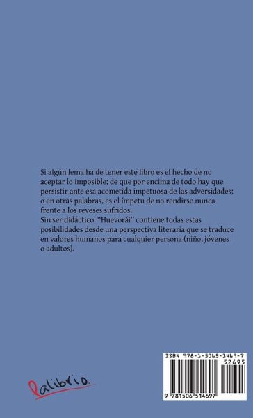 Si algún lema ha de tener este libro es el hecho de no aceptar lo imposible; de que por encima de todo hay que persistir ante esa acometida impetuosa de las adversidades; o en otras palabras, es el ímpetu de no rendirse nunca frente a los reveses sufridos. Sin ser didáctico, "Huevorái" contiene todas estas posibilidades desde una perspectiva literaria que se traduce en valores humanos para cualquier persona (niño, jóvenes o adultos).
