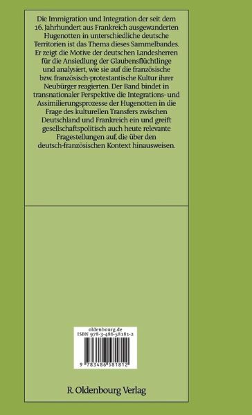 Der vorliegende Sammelband analysiert in komparatistischer und transnationaler Perspektive die Immigration und Integration von Hugenotten in unterschiedlichen deutschen Territorien. Er zeigt, wie deutsche Landesherren auf die Franzosen und die "typisch" französische bzw. französisch-protestantische Kultur der Glaubensflüchtlinge reagierten. Er fragt nach den Maßnahmen, welche die deutschen Regierungen ergriffen, um den Refugiés zu helfen, nach den Erwartungen, die mit der Ansiedlung der Franzosen verknüpft wurden, und nach den Programmen, die entwickelt wurden, um die Neubürger zu integrieren - soweit dies überhaupt erwünscht war. Der Band bindet in transnationaler Perspektive die Integrations- und Assimilierungsprozesse der Hugenotten in die Frage des kulturellen Transfers zwischen Deutschland und Frankreich ein und greift gesellschaftspolitisch auch heute relevante Fragestellungen auf, die über den deutsch-französischen Kontext hinausweisen.