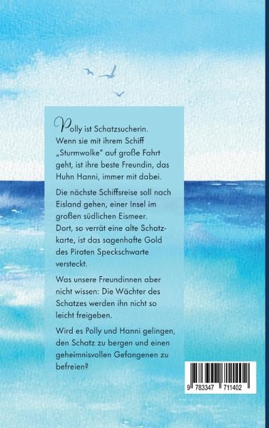 Polly ist Schatzsucherin. Obwohl sie nur die winzige Sturmwolke, das kleinste aller Schiffe in ihrem Heimathafen Tortuga , ihr Eigen nennt, ist sie erfolgreich auf allen sieben Meeren unterwegs. Aus Platzgründen kann Polly nur allein auf der Sturmwolke unterwegs sein. Hier kommt nun aber das titelgebende Huhn ins Spiel . Polly kann es vor dem Schlachten retten und stellt überrascht fest, dass dieses besondere Huhn sprechen kann. Polly nimmt es zu ihrer neuen Schatzsuche mit an Bord. Die beiden ungleichen Besatzungsmitglieder finden nicht nur einen sagenumwobenen Schatz, sondern es gelingt ihnen auch die Befreiung eines geheimnisvollen Gefangenen auf der Insel der Pinguine.