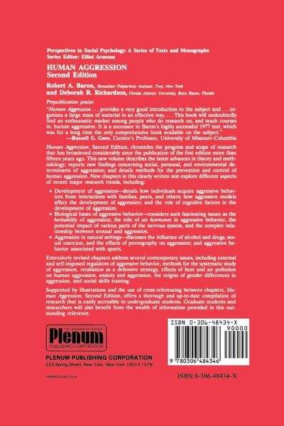 "An excellent book on human aggression....It is comprehensive and provides a useful and up-to-date summary of recent lines of research, yet it is easily read and understood by advanced undergraduate and graduate-level students."