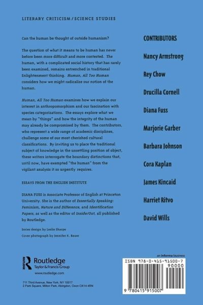The question of what it means to be human has never before been more difficult and more contested. The human, with a complicated social history that his rarely been examined, remains entrenched in traditional Enlightenment thinking. Human, All Too Human considers how we might radicalize our notion of the human. Can the human be thought outside humanism? Any rethinking of the human places us immediately inside an ever-widening field of contrasting labels: animate and inanimate, natural and artificial, living and dead, organic and mechanistic. These and other boundary confusions at the frontier of the human are the subject of this volume, as each essay takes up one of three disputed border identities: animals, things or children. Human, All Too Human examines how we explain our interest in anthropomorphism and our fascination with species categorizations. Essays explore what we mean by things and how the integrity of the human may already be compromised by them. The nine essays in this volume all attempt to rethink the category of the human, challenging some of our most cherished cultural classifications. By inviting us to place the traditions subject of knowledge in the unsettling position of object, these writers interrogate the boundary distinctions that, until now, have exempted the human from the vigilant analysis it so urgently requires. Contributors: Nancy Armstrong, Rey Chow, Drucilla Cornell, Diana Fuss, Marjorie Garber, Barbara Johnson, Cora Kaplan, James Kincaid, Harriet Ritvo, David Willis